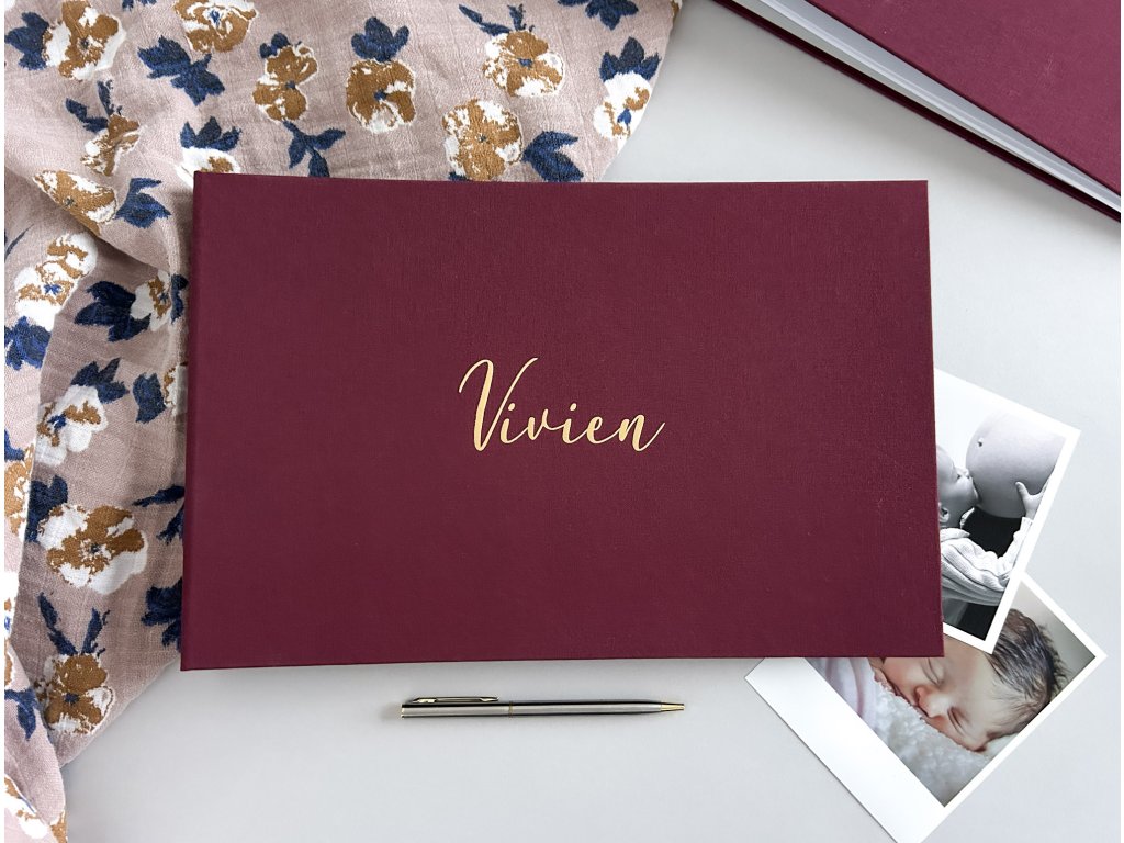 Fotoalbum se jménem nebo vlastním nápisem bordó + bílý/zlatý/stříbrný potisk